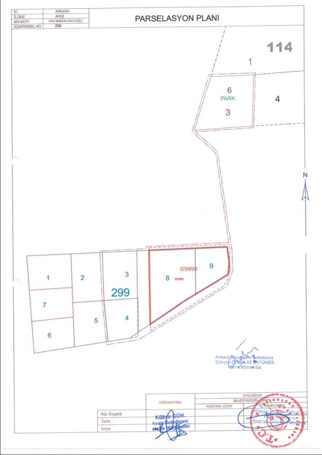 İlçemiz Hacımemi Mahallesi 299 ada 3 ve 4 no.lu parseller, Hacıveli Mahallesi 114 ada 3 no.lu parsel ve Maliye Hazinesi adına Parktan ihdas alanını kapsayan 93018 no.lu parselasyon planı